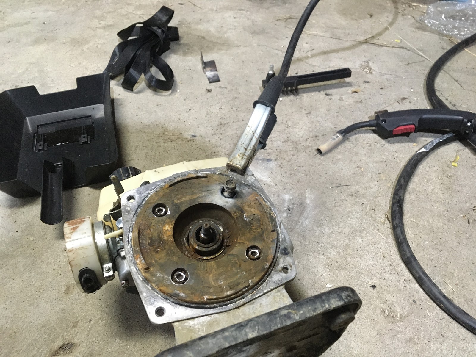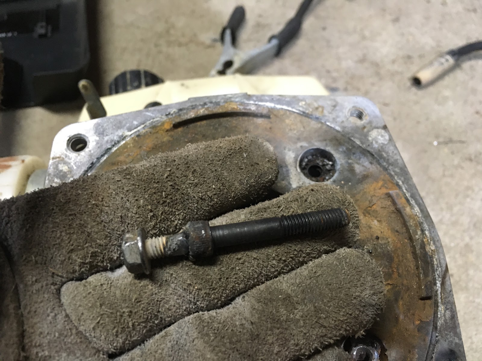 そんなときにボルトのサビをリューターで削り落として、ボルトを溶接して抜いた。