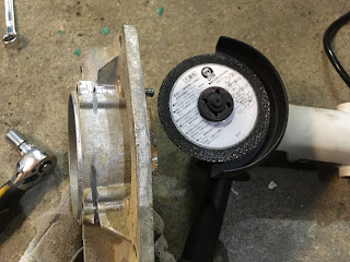 ってことで、ポンプの基部のボルトが貫通している部分をグラインダーでカットしてやりました。