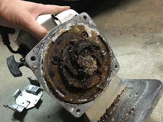 インペラ?はガチガチに固着しており、なんかココが固まっていてリコイル紐がひけないのかも?